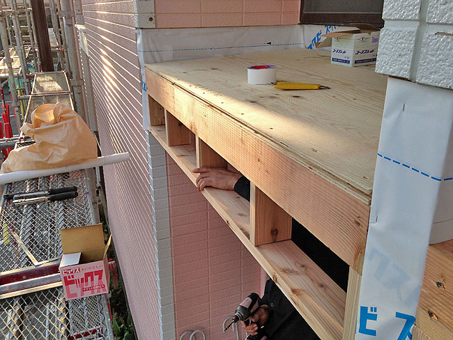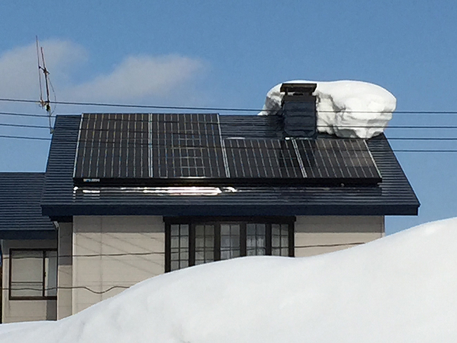 施工方法:太陽光モジュール上部、落雪ジャンプ台施工法