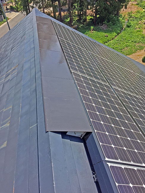 施工事例 太陽光モジュール上部、落雪ジャンプ台工事